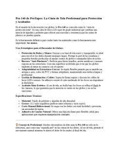 Descripción: La cinta de tela Pro 140 es la aliada imprescindible para el decorador profesional ya que permite forrar bordes afilados y uniones de PVC para evitar pinchazos accidentales en los globos además de ser perfecta para proteger tus propios dedos de las rozaduras al hacer nudos constantes durante el montaje. Su acabado mate evita reflejos en las fotografías y su alta flexibilidad le permite adaptarse a cualquier estructura curva o gestión de cables LED garantizando un acabado limpio y pudiendo cortarse fácilmente con la mano para maximizar tu productividad.