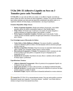 Descripción: El adhesivo UGlu 200 disponible en tres prácticos tamaños de tiras y cuadrados es la solución definitiva para unir globos entre sí o fijarlos a superficies difíciles como ladrillo y metal con la potencia de un pegamento líquido pero sin manchas ni herramientas permitiendo realizar montajes orgánicos complejos de forma invisible y segura gracias a su fórmula transparente que no daña el látex y se retira sin dejar residuos garantizando un acabado profesional en cualquier tipo de evento o escaparate